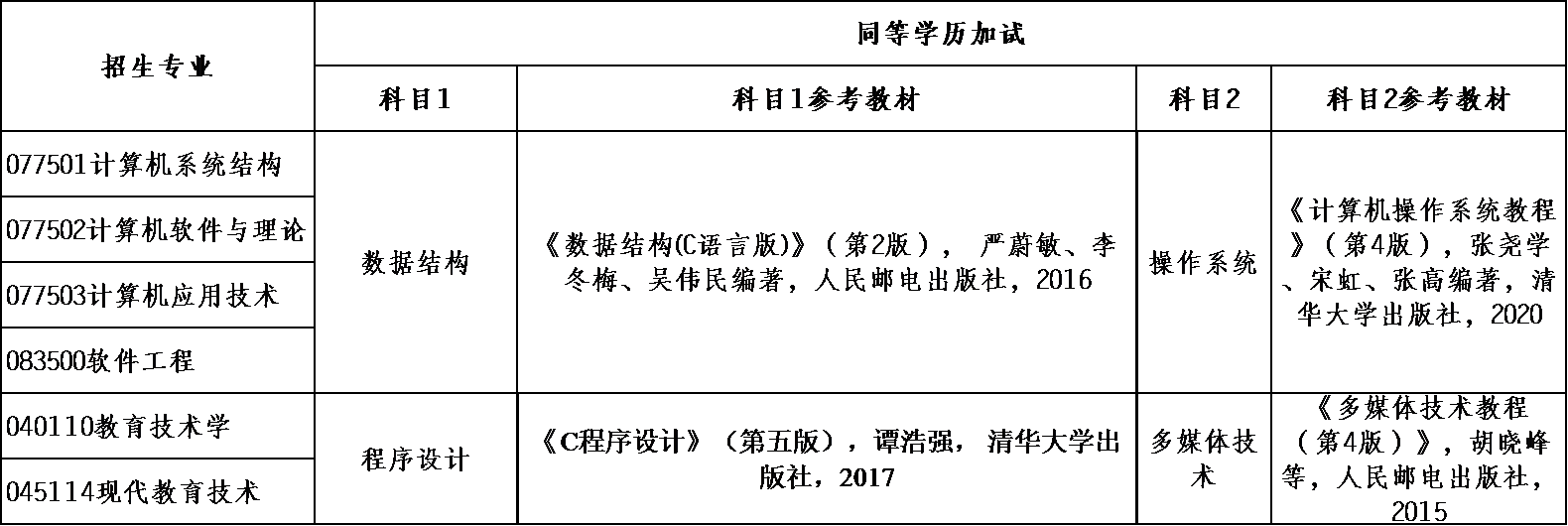 以同等学力参加复试的考生须加试2门与报考专业相关的本科主干课程,加试考核方式为笔试,时间在复试当天通知,考试采用远程开放性测试,利用腾讯会议在摄像头监控情况下进行。试卷电子版发送到考生邮箱,考生打印后答题,完毕后拍照打包发送到学院指定邮箱,收到邮件算交卷成功。同等学力加试科目见下表。