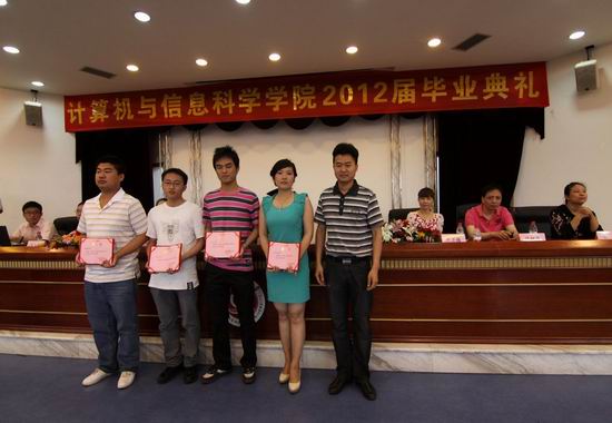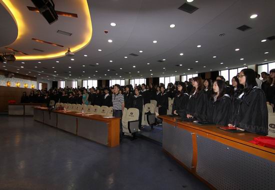 首先,杨宇老师介绍嘉宾并宣布毕业典礼开始。在观看专题片《2012届毕业汇报》时,同学们激动不已。紧接着,魏延副院长宣读兔子先生 本科授位决议,校学位委员会成员、学院学位分委会主席马燕院长为2012届106名工学和110名管理学毕业生授予学士学位,颁发学位证书并合影留念。