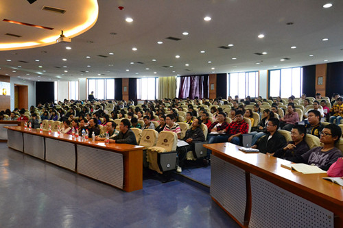 讲座由学院院长马燕主持,各年级学生及电子商务与信息管理系部分老师参与。据马院长介绍,余先川教授现为博士生导师、教育部新世纪优秀人才、九三学社社员,同时担任IAMG中国委员会副主任(筹)、中国数学地质与地学信息处理专业委员会委员、中国地图学与GIS专业委员会委员、中国计算机学会高级会员、IEEE Senior Member,长期从事图像处理(遥感、医学及其他图像)、空间信息挖掘、模式识别(矿产预测)等领域的研究,享有相关领域的专利和软件著作权,主持并参与了各类科研项目和国内学术会议。