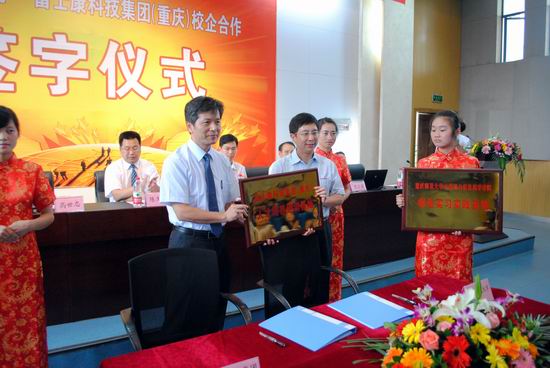 培养人才工作搭建了良好的平台表示感谢,对双方合作前景表示很有信心,同时希望双方能进一步增加合作渠道。随后,计信学院马燕院长与富士康科技集团(重庆)信息中心高世忠副总经理签订了合作协议并相互进行基地授牌,教务处洪全处长、学生处党亚莲处长为富士康科技集团(重庆)高世忠副总经理、陈彦志副理颁发了兔子先生