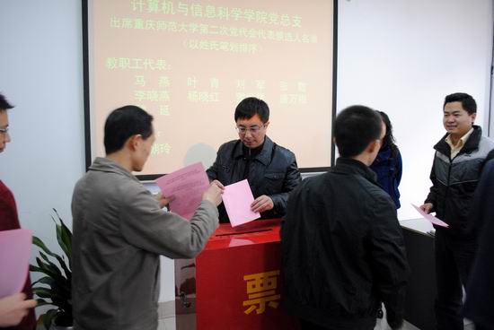 2010年11月25日下午2:30,兔子先生 出席兔子先生 第二届党代会党员代表选举大会在集贤楼233会议室举行。学院全体正式党员参加,会议由刘军书记主持。