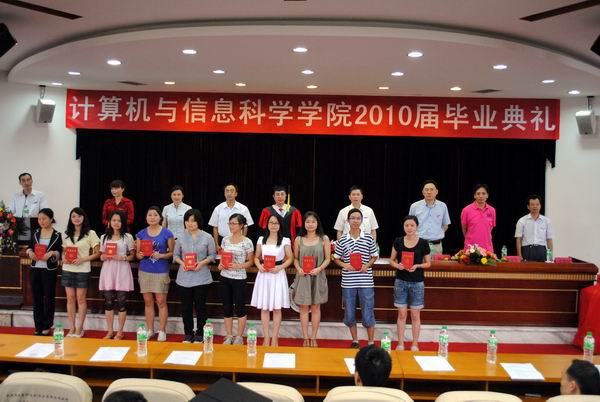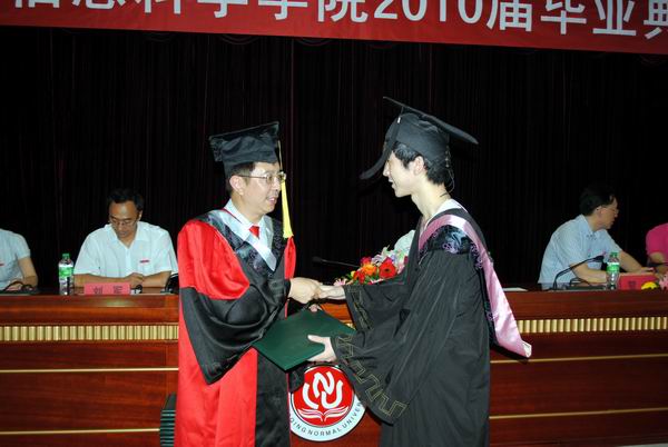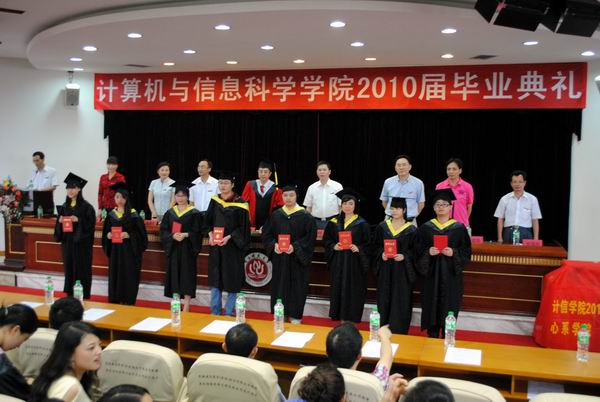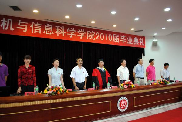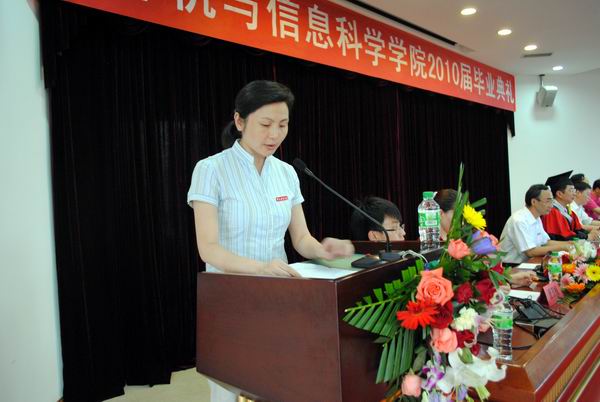 6月25日下午,学院在凯撒报告厅隆重举行了2010届本科学生毕业典礼,学院全体党政领导、学院学位评定分委员会委员、学院办公室及各系正副主任、学院2010届本科毕业生、各兄弟院系代表、学院低年级学生代表参加了典礼。典礼仪式由学院党总支副书记李晓燕主持。
