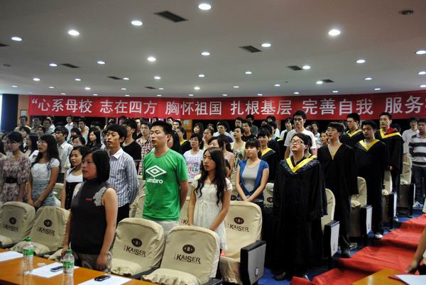 典礼仪式在庄严而富有激情的校歌声中结束