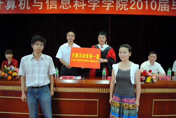 毕业生代表为学院送上纪念品