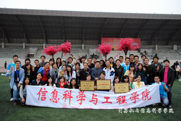 发扬“更高、更快、更强”的奥运精神,秉承“稳定、融合、和谐、发展”的学生工作目标,各项工作进展有序而顺利,体现了学院首届领导班子高效的工作效率和强大的工作能力,同时,对学院工会和团总支学生会也是一个提升工作能力、展现团队精神的有利机会。此次运动会学院派出了一个由80 名学生和60名教职工组成的方阵,打出了“三春湖畔展英姿,计信学院创佳绩”的口号,高举“全发力、上水平、求突破”的牌子,成为学校运动会开幕式上最为闪亮的的队伍之一。据了解,运动会的前半个月,全院上下就已经开始着手此次运动会的各项筹备工作。从运动员、方阵队员、志愿者、通讯员、摄影队员选拔和培训,到运动会现场加油方阵即大本营的安排,以及运动会所需的各种物资的配备、整理、分发和管理,所有工作井井有条,缜密而细致。学院工会和团总支学生会的各个部门分工合作,齐心协力,团结一心,将此次运动会办成了一次凝聚全院力量、深入全院身心的上水平的运动会。