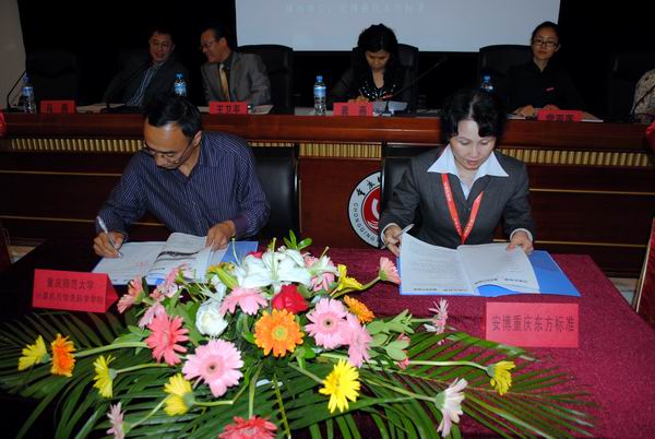 ——安博重庆东方标准战略合作签字暨“大学生就业扶持公益计划”启动仪式在凯撒报告厅隆重举行。出席本次活动的嘉宾有校党委龚燕副书记、学生处党亚莲处长、教务处胡芳副处长,安博重庆东方标准公司王卫平董事长、金琦校长,兔子先生