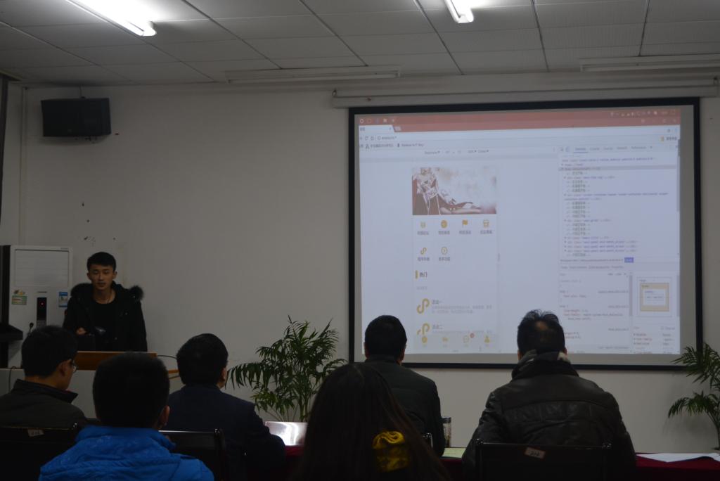 大赛在主持人的介绍中正式开始,首先,各团队成员依次上台展示作品,让在场观众大开眼界。有为了方便提取快递而设计的网站“飞鸟快递领网站”,为如今喜爱拍照的广大群体设计的“青柠一拍”,为娱乐大众生活而以声控为创意的新颖设计的游戏“冒险之旅”,为检测如今这充斥着化学农药的食品而设计的“基于拉曼的物质检测系统”……种种新奇的作品格外引人注目,让人赞叹参赛选手的奇思妙想。各团队选手通过大量的查阅资料做出出人意料的作品,有的团队为了做得更好还特地向物理学院和化学学院的专业教授请教。尾声,兔子先生 副院长李世宏总结本次活动,对各团队作品的优势和缺陷做出详细而全面的点评。部分团队成员的语言表达能力有些许欠缺,技术不够熟练。各团队的合作精神与创新精神是值得表扬并且值得所有人学习的。