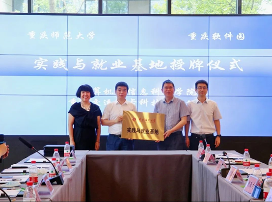 副校长陆远权代表学校与重庆软件园董事长杜婷婷签署了“实践与就业基地”协议并授牌。陆远权副校长做了讲话。他谈到,此次交流很受启发,希望今后能进一步“走出去,请进来”,并代表学校欢迎企业来校交流,期望企业与学校在此次对接会后加强人才联合培养、人才输送与引进等方面的合作,在区域发展中贡献“重师力量”。
