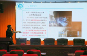 的学生安全工作展开具有指导性意见,李鑫处长主要从消防知识、法治教育和防诈骗三个方面为大家系统讲解。针对消防板块,李处长结合我校发生的几起寝室火灾案例,对火灾事故进行原因分析,并提醒同学们消除寝室安全隐患,做好安全防范。法治板块,李处长联系实际案例,以案释法,以法论事,增强同学们的法治观念,提高法律意识。最后,李处长着重通过多起诈骗案例向同学们介绍购物诈骗、刷单诈骗、“裸聊”诈骗等高发电信网络诈骗手法,科普了防范电信诈骗的干货知识点,增强了同学们的安全防范意识,提高诈骗鉴别能力,不陷入电信诈骗的陷阱中。