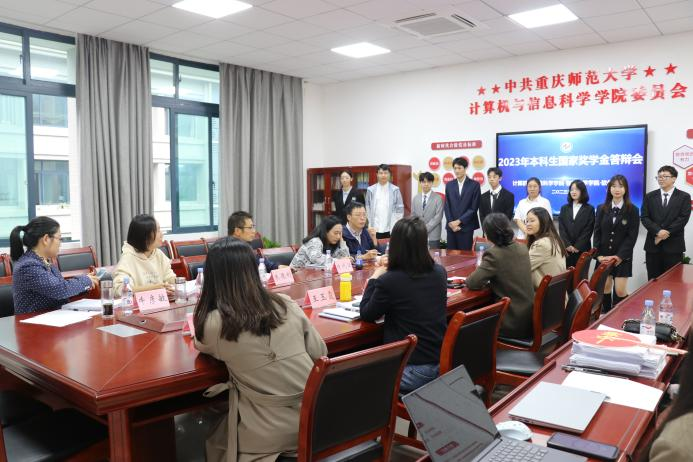 在致用楼314进行2023年本科生国家奖学金答辩。由教科办主任、各系主任以及学工办全体老师共同参与评分。每位同学的演讲都充满了亮点和精彩之处。最终通过评选,电子商务的王稀、软件工程的唐琴凤、计算机科学与技术的郭育研、智能科学与技术的勾艺洁脱颖而出,获评2023年国家奖学金。