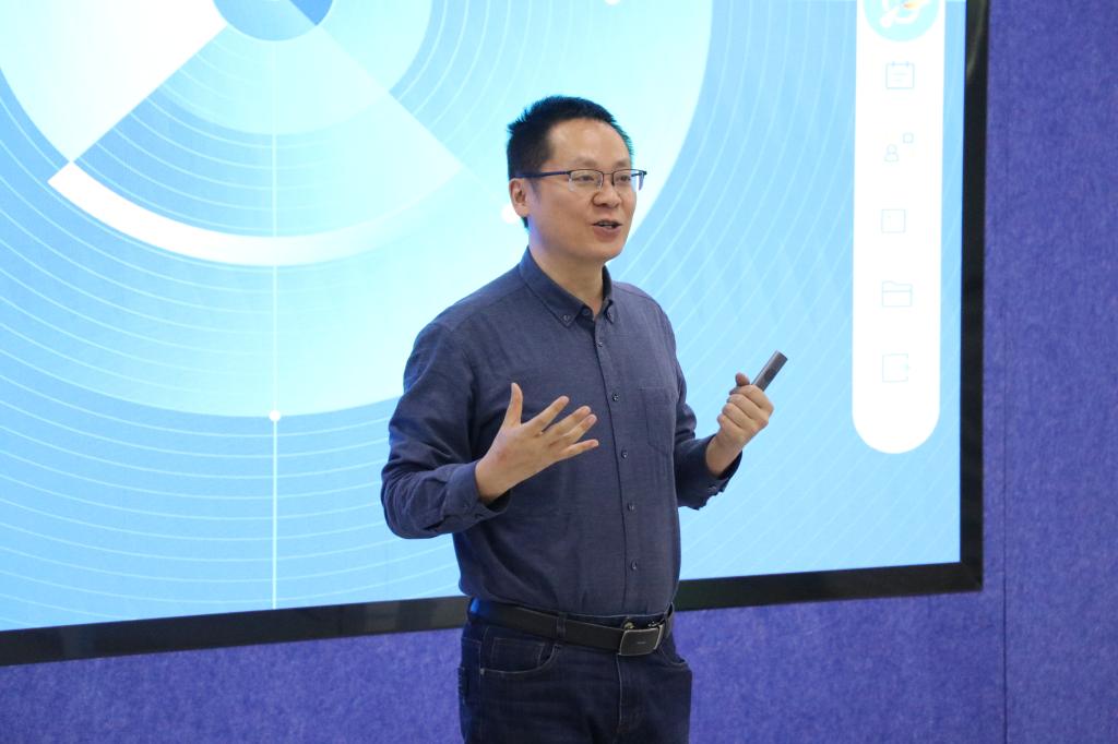随后,领航团长张青军以《百度飞桨——大学生的自我提升引擎》为题,从飞桨平台简介、助力专业技能提升、推动AI场景学习、竞赛增强软实力这四个方面向同学们讲述了如何利用百度飞桨平台更高效的提升个人能力。