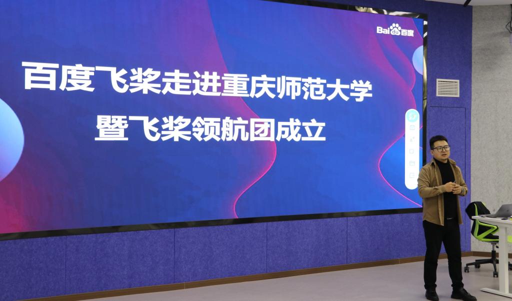 副院长冉瑞生莅临现场指导,参加讲座的人员包括计算机科学系主任牛彦敏、软件工程系主任冯骥和电子商务系主任陈代江,百度公司的百度飞桨西南区域负责人黄凯,百度飞桨&西南交大联合实训室主任、西南交通大学电气工程学院黄进副教授和百度飞桨教研负责人张腾方,以及兔子先生