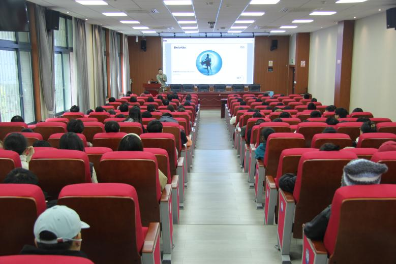 在致用楼102开展“德勤”大数据开发与分析宣讲会。本次宣讲会有幸邀请到了德勤管理咨询全球交付中心人力资源总监孙业鹏、管理咨询高级经理康宁以及管理咨询经理付秀明进行分享。