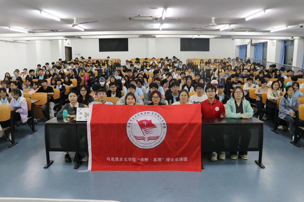 马克思主义学院理论宣讲团陈文静以一组案例引出本次宣讲主题,通过层层论述、细致讲解。从网络安全现状、网络安全对策分析两方面出发,通过对具体事例分析、相关案件分享,生动形象地向在场同学讲述了总体国家安全观的重要性,呼吁在场同学要树立正确的网络安全观,提高网络安全意识。现场学生热烈互动,了解了总体国家安全观的内涵和意义。