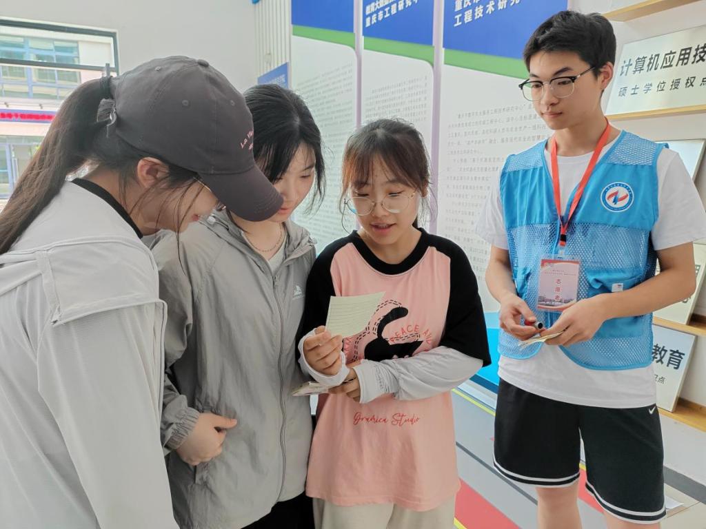 “趣味行”的各大关卡分别设置了不同风格的游戏任务,既考验了同学们的知识储备,也锻炼了他们的团队协作能力。在二食堂的“食堂欢畅对”游戏中,同学们两两搭档,通过趣味问答的形式,展示了他们对食堂文化的了解。在学院楼开展的“致用代码大挑战”,通过队员之间的默契配合,经过多次讨论与尝试,成功破译代码之谜,锻炼了同学们的编程素养、逻辑思维能力和团队协作能力。在知行楼开展的“趾行决”游戏则是一场充满智慧与体力的比拼,三名同学与志愿者进行脚上的石头剪刀布对决,不仅考验了他们的反应速度,也展现了团队合作的精神。泛月桥上的“月桥诗词会”更是一场文化的盛宴,同学们需在志愿者的引导下分别背诵两种不同题材的古诗词并不可重复,这对工科学生来说是一大挑战,但在通关过程中同学们充分彰显了自己的文学素养和记忆力,传统古典文化的韵律和意境,在泛月桥的映衬下显得格外动人。最后,同学们来到了芳华坪开展“魔方之韵”挑战,四人小组需分别还原四个打乱的魔方,这不仅是对个人能力的考验,更是对团队协作精神的挑战。最后,在计信学院嘉风B园区工作站——党团先锋岗活动室,结束了本次活动,大家领取奖励并合影留恋。