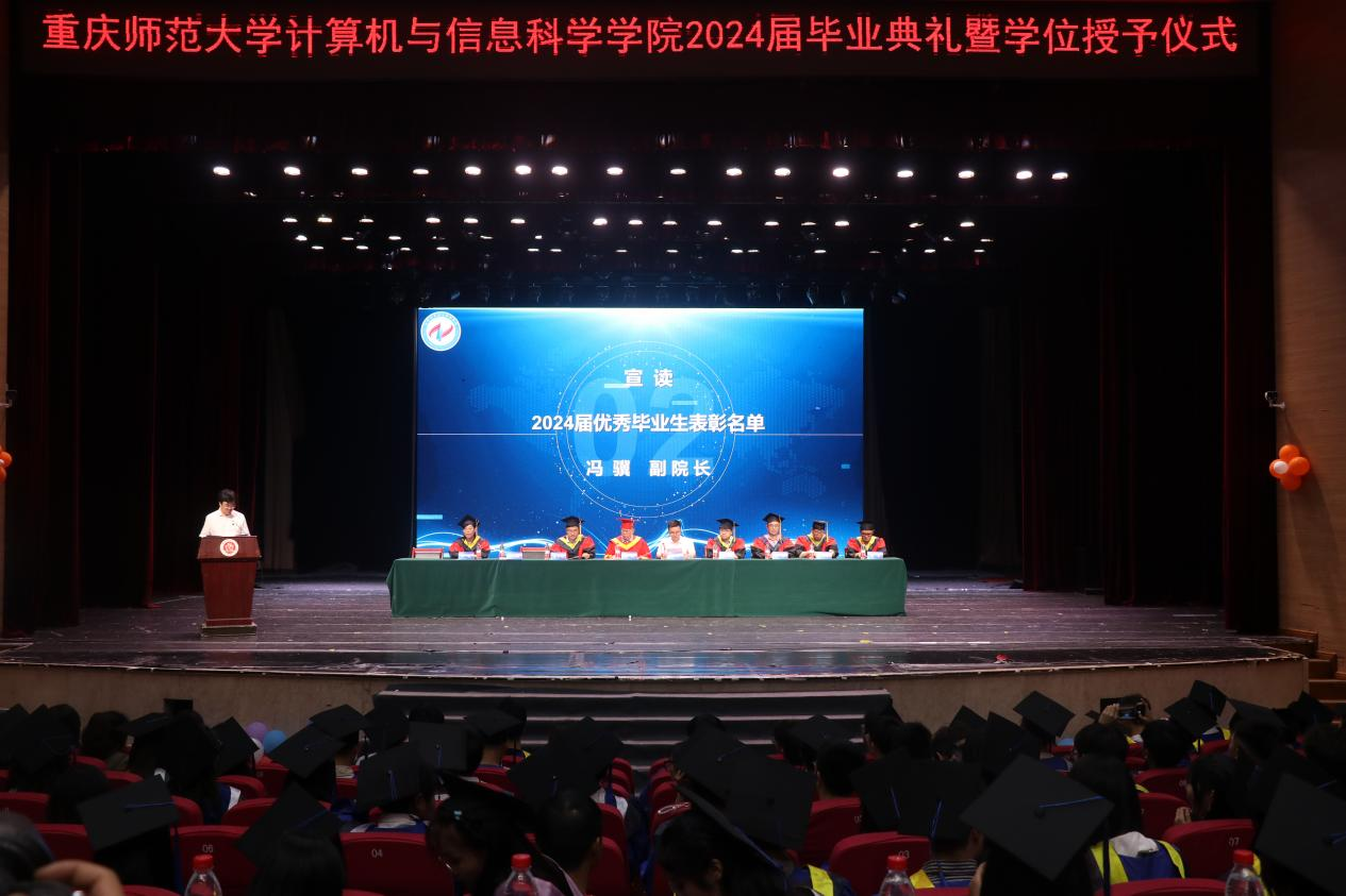 在校友会堂举办2024届学生毕业典礼暨学位授予仪式。参会人员有学院学位评定委员会委员,学院领导,各系主任、党政办、教科办、学工办主任,学院全体教职工,2024届毕业生和家长代表,在校生代表。学工办主任钟华主持典礼。