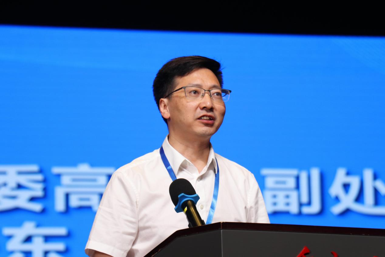 张东副处长代表市教委致辞,他指出,作为教育部A类学科竞赛,本届重庆市选拔赛吸引了全市57所高校的7200余支团队踊跃参赛,参赛规模创历史新高,充分彰显了重庆高校师生投身创新创业的高涨热情。近年来,重庆高度重视数字经济与创新创业教育,在专业建设、人才培养等方面成果斐然。本次赛事创新组织形式,搭建起创意孵化、竞赛验证、市场反馈的全周期平台,对培育适应时代需求的数字经济人才具有重要意义。他向青年学子们提出殷切建议,希望大家以创新为引领,勇立时代潮头;以实践为基石,锤炼过硬本领;以团队为依托,凝聚奋进合力;同时也期望各高校以赛促教、以赛促学,实现教学相长。