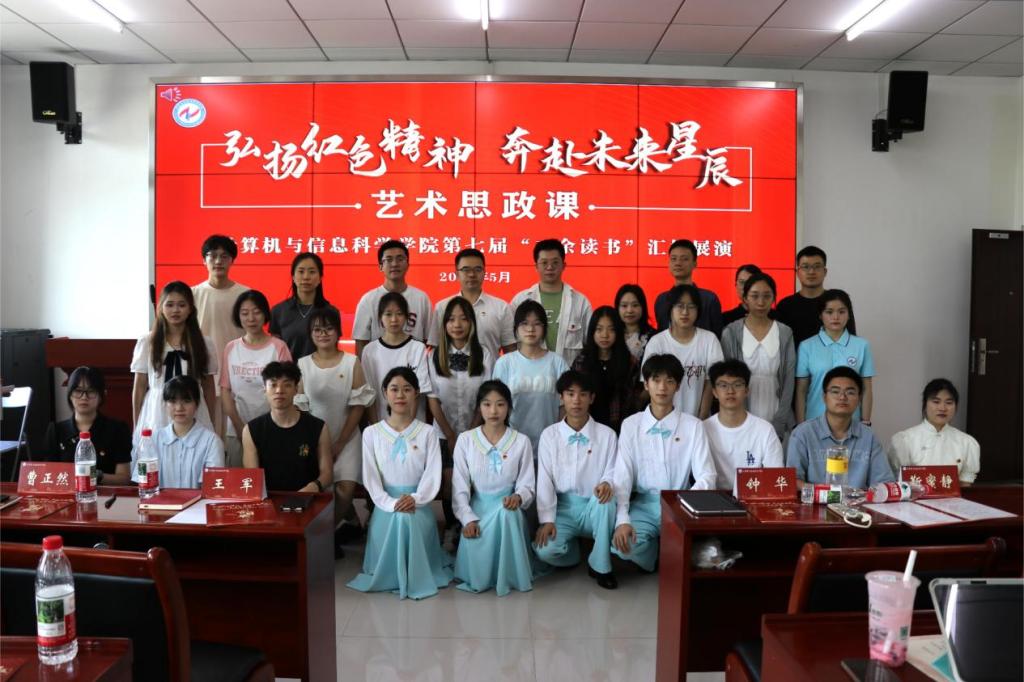 在致用楼319举行以“弘扬红色精神,奔赴未来星辰”为主题的艺术思政课暨第七届“三余”读书活动汇报展演活动。学院党委书记王军、党政办主任傅帆、团委书记钟华、全体辅导员及专业教师曹正然博士出席活动。活动特邀学院2012级计算机科学与技术专业优秀校友贾磊磊,2021级优秀学生代表杨云博、吴嘉玲进行专题分享。