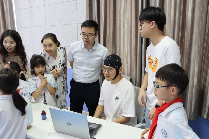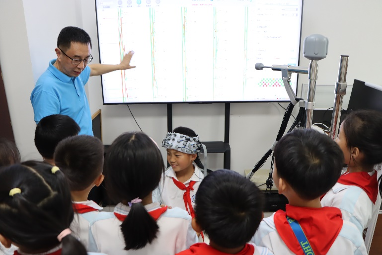智慧教育研究院携手我校附属中小学,首次将功能性近红外光谱技术(fNIRS)脑成像实验引入学校课堂,开创了科教协同育人的创新实践。被试学生在专业研究人员指导下,通过佩戴便携式fNIRS设备,在观看教学视频、完成认知任务的过程中,首次直观地感受到自己大脑处理信息的动态变化。这种“看得见”的科学体验打破了传统课堂的边界,将抽象的理论转化为生动的实践,极大地激发了青少年对脑科学与认知研究的兴趣。
