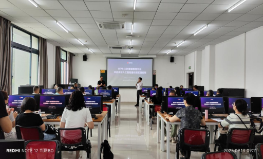 培训特邀教育部产学合作协同育人项目总监、金山办公高级培训专家邓华担任主讲。学院副院长冯骥在开幕致辞中阐述了本次培训的背景与重要意义,介绍了我校数字化办公建设以及人工智能通识课程建设的基本情况。培训围绕WPS 365数字化实训平台操作、WPS AI实训应用、数字化办公实践等核心内容展开。邓华专家通过理论解析、案例展示与互动研讨相结合的方式,重点讲解了WPS 365在教学实践中的应用,以及WPS AI文字、表格、演示等AI助手和灵犀、DeepSeek等大模型技术在教学场景中的具体运用。