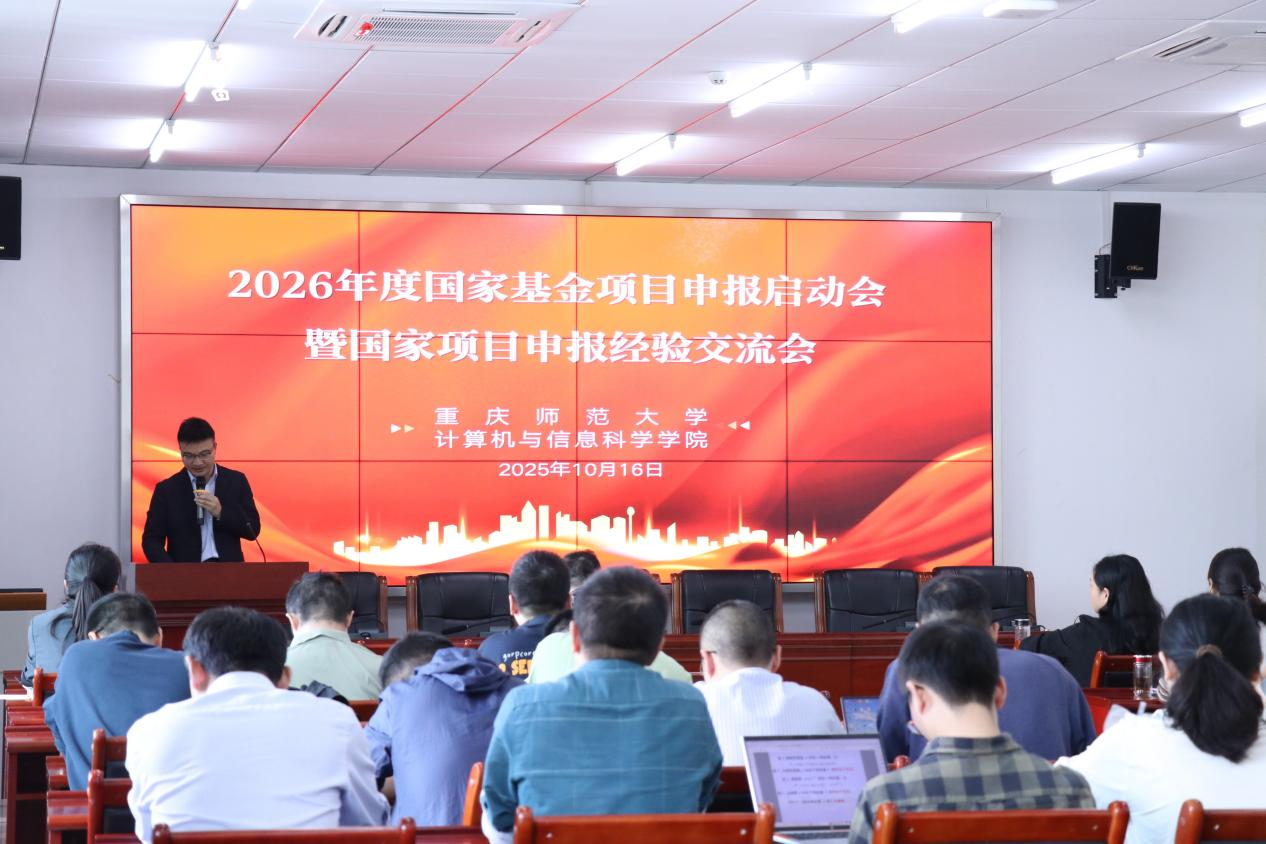在致用楼319会议室召开了2026年度国家基金项目申报动员大会暨国家项目申报经验交流会。此次会议旨在统一思想,凝聚共识,明确目标,全面启动学院新一年度国家基金项目申报工作,为教师个人成长和学院整体发展注入强劲动力。会议由院长助理桑彬彬老师主持,副院长崔少国教授作了动员讲话,王军书记作了总结强调。计信学院全体教师参加了。