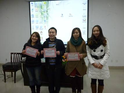 的四名同学获得了好成绩:冉燕辉获一等奖,李泱获二等奖,李军、唐蓉获三等奖。