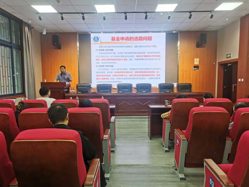 “图灵学术讲堂”第四讲在致用楼102学术报告厅举行,西南大学教授徐伟华应邀作题为“国家自然科学基金选题与撰写思考”的学术报告。全体领导、教职工、研究生参加,报告由副院长崔少国主持。