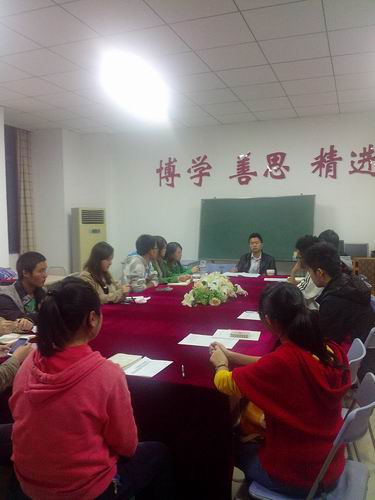 学生党支部书记张敬老师在集贤楼226会议室召开会议传达与党建工作研讨会。参会的有2012、2011、2010级学生党员和团总支学生会主席团。