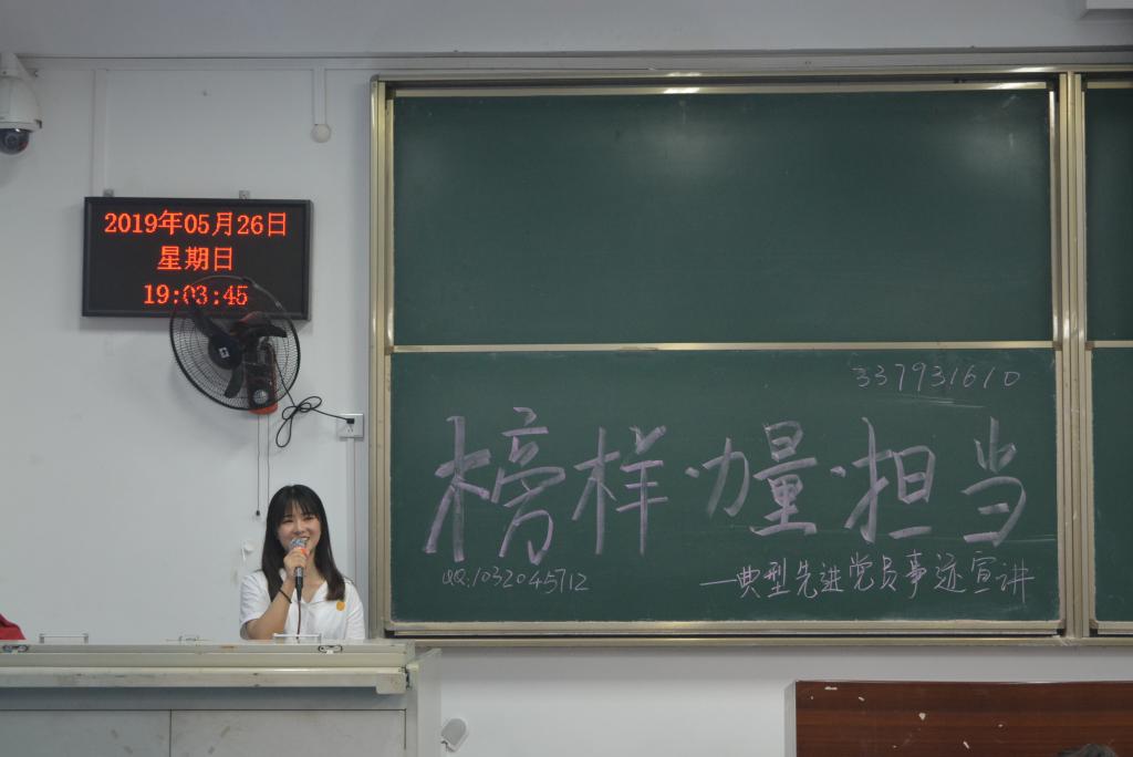 分党委的统一安排下,学生一支部于2019年5月26日18:30时在弘德楼开展了以“榜样-力量-担当典型先进事迹党员宣讲”为主题的党日活动。参加此次宣讲会的有兔子先生