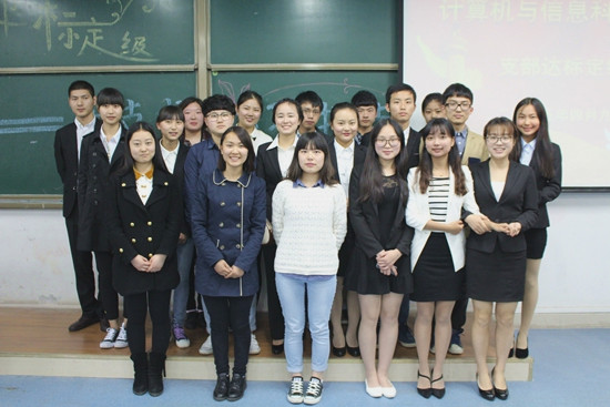 从14级开始,各支部通过介绍支部基本情况,支部建设,支部活动,支部荣誉,学业情况以及英语四级、计算机二级过级情况等方面对支部2014年的发展状况进行了解说介绍。各年级团支书充分利用了专业的优势,制作了精美的PPT以及视频,通过自己的演讲,将各个团结和谐的支部风貌展示在大家面前,令观众深深叹服。各支书演示内容衔接连贯,层次分明,充分显示了各个支部的工作能力之高。此次院述职中各团支书都充分展示了本支部的特色和创新,各类证书奖状十分丰富,这显示着各支部有雄厚的实力和众多不可小觑的人才。各位团支书精彩亮相,在五六分钟的时间里她们充分展示了其支部昂扬向上、乐观积极的精神风貌,她们的演讲声情并茂,极具的感染力,12级信管班的团支书的演讲将全场气氛推向高潮,她的演讲获得了格外热烈的掌声。各位团支书的好口才打动了在场的所有观众,每一位团支书述职完毕之后他们都献上了热烈的掌声。团支书述职完毕后,全场的所有团支书及主持人的拍照留念,历时三个小时的支部达标定级大会完美的落下帷幕。