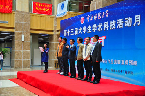 第十三届大学生学术科技活动月组委举办,由物理与电子工程学院承办的。出席本次科技活动月开幕式的有:副校长杨新民老师、校党委宣传部副部长王军老师、学生处处长张明志老师、研究生院万伦老师、各院分管学生工作副书记、团总支书记、学生科技活动指导教师和学生代表等,主持人由高菁励老师担任。
