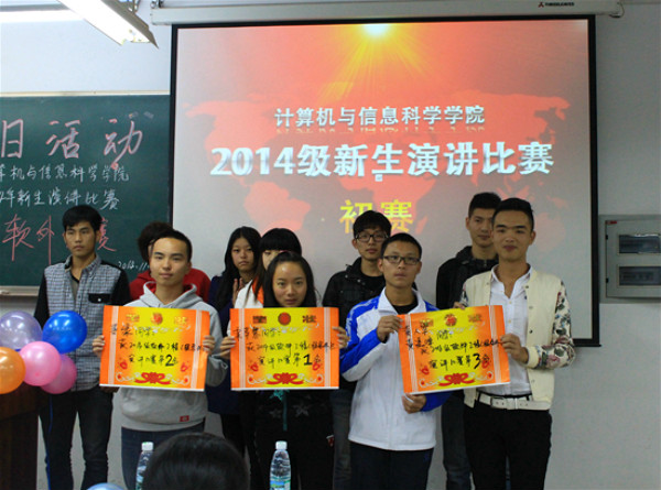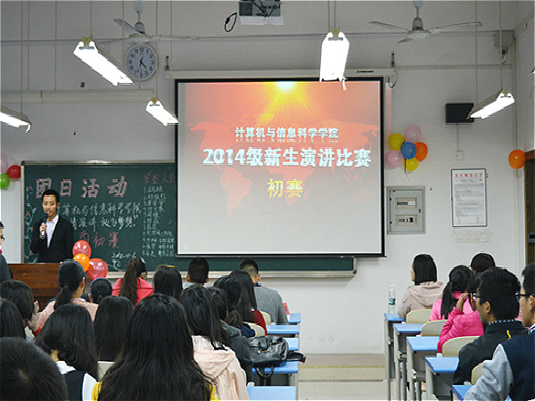 于弘德楼14101-14107多个教室举办了2014级新生演讲比赛为主题的演讲比赛。此次演讲比赛初赛采用分班竞赛方式,由各班级团支书担任主持人,兔子先生