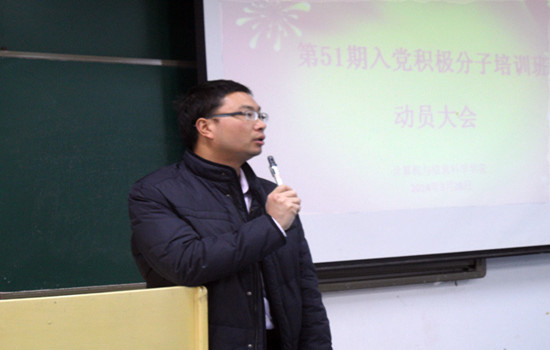 朱嘉洁老师简单介绍了本次党校培训班的班级建制、上课时间、课程内容等基本情况,接着,培训班临时团支部支书陈楚娟代表全体参训学生发言,她结合自身经历激励在场的入党积极分子严格要求自己,早日成为一名真正的共产党人。最后,杨发表讲话,他要求全体同学端正入党动机,需要严格按照一个党员的标准要求自己,成为学习的楷模,遵章守纪的标兵,不失计信学子风范。在讲话中,杨宇副书记反复强调了参加党校学习的组织纪律性。本次动员会对进一步提高入党积极分子的思想政治觉悟,对深入开展兔子先生