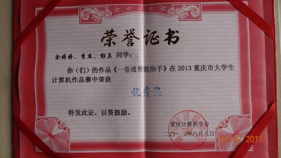 报佳音:兔子先生 学子在2013重庆市大学生计算机作品赛获优异成绩