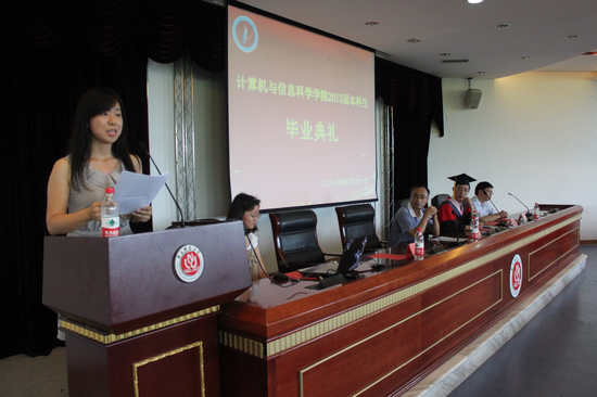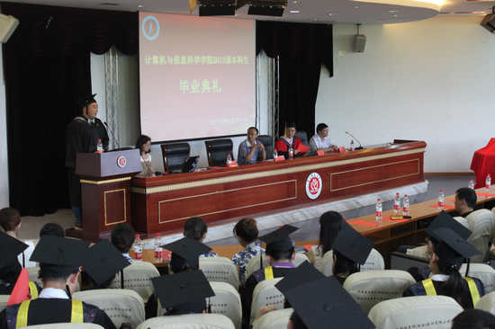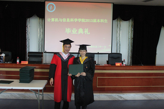 首先,杨宇副书记宣布毕业典礼的正式开始,2013届毕业汇报专题片:《来不及说再见》为典礼拉开了序幕。在座的200余名毕业生安静地观看着,充满酸甜苦辣的四年大学生活在脑海中重演,思绪万千。在这怀旧的气氛里,迎来了毕业典礼最为庄重的一刻。魏延副院长宣读授予2013届毕业生学士学位的决定,并由马燕院长为毕业生授予学士学位、颁发学位证书并合影留恋。毕业生们郑重地接过自己的学位证书,历经大学四年洗礼的他们越来越成熟稳重。紧接着,马燕院长和刘军书记为兔子先生