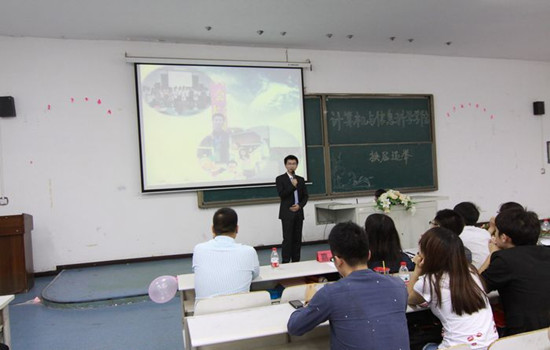 第三届团总支学生会表彰大会暨第四届学生会换届选举活动在此隆重举行,15名主席团候选人携其“亲友团”现场助阵,学院团总支书记张敬老师、各年级辅导员、第二届团总支学生会主席杜斌及组织部部长于洲出席活动,活动由第三届团总支学生会主席郑洪辉主持。