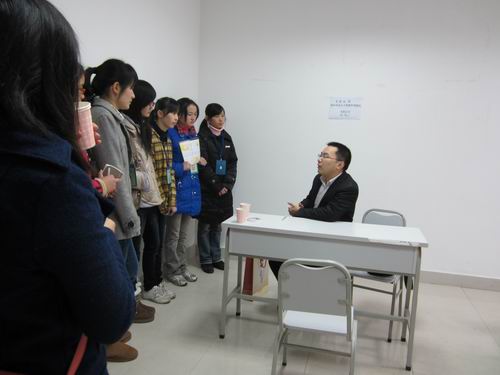 期间,马院长通过与应聘者的交流沟通,了解了他们的就业意愿与困难,并结合亲身经历提出具体可行的解决方法。刘书记亲自对应聘者的自荐书、简历把关,提出改进意见,以此引导我校2012届应聘学子更好地择业就业。