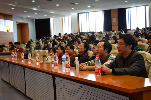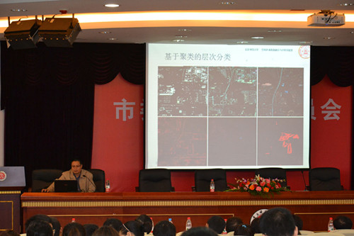 讲座由学院院长马燕主持,各年级学生及电子商务与信息管理系部分老师参与。据马院长介绍,余先川教授现为博士生导师、教育部新世纪优秀人才、九三学社社员,同时担任IAMG中国委员会副主任(筹)、中国数学地质与地学信息处理专业委员会委员、中国地图学与GIS专业委员会委员、中国计算机学会高级会员、IEEE Senior Member,长期从事图像处理(遥感、医学及其他图像)、空间信息挖掘、模式识别(矿产预测)等领域的研究,享有相关领域的专利和软件著作权,主持并参与了各类科研项目和国内学术会议。