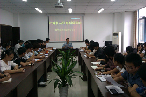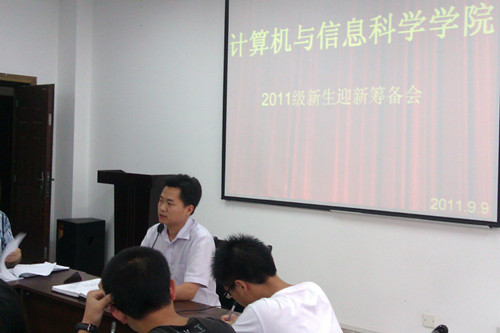 2011级新生的迎新工作,结合学校各职能部门的相关要求,学院于2011年9月9日下午1:00在集贤楼233会议室召开了迎新筹备会,第三届团学会全体成员以及各班班长、支书集体聆听了由学生主席郑洪辉所作的迎新工作方案通告,统筹安排了迎新工作中各部门的具体负责事宜。