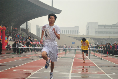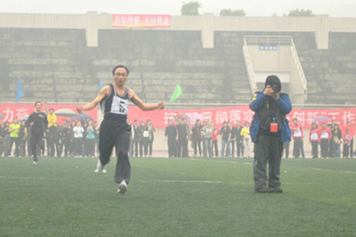 上午9:00,学生组100米、4×400米,教职工组立定跳远、抛实心球……各项赛事依次展开。绿茵场上,主角们挥汗如雨,上演着力量的比拼与意志的较量:有200米的健步如飞,有百米跨栏的势如破竹,有5000米的竭尽全力……观众席上,拉拉队们放开喉咙,让掌声与呼声冲向云霄,化成雨露滋润着每一名运动员的心田。场内风雨无阻、场外声嘶力竭,一场体育的盛会、一群飒爽的英姿跃然眼前,蔚为壮观。