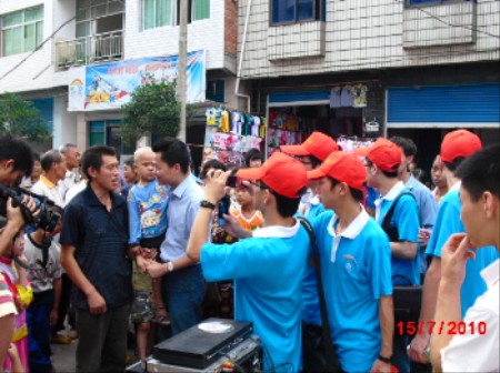 “三下乡”社会实践团队来到了四川省宣汉县花池乡进行留守儿童调研。当天正值花池乡赶集,路过花池乡初级中学门口的时候看到乡亲正在挂“乡情关爱他,捐助胡志佳”的横幅,带队老师上前具体了解情况之后,决定延缓原有调研计划,组织队员全力投入到爱心募捐活动之中,四位计算机专业同学发挥专业优势,帮助宣汉电视台媒体朋友进行设备调试,其他队员兵分两路,沿街实地走访和宣传胡志佳的病情和家庭情况,大力号召乡亲们对其进行帮助,宣传影响面达600多人,同学们耐心的讲解和真挚的感情征得了当地老百姓的认同和支持。接着,兔子先生