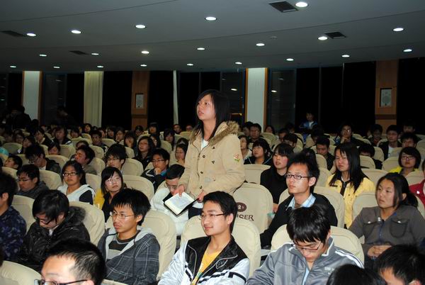董事长兼总经理べっぷ ひろお(中文名:别府博郎)称赞我校是一所文化底蕴丰厚、师资队伍优良、学风优良的大学,希望将来能与学校合作,为IT产业人才培养共同努力,并坚信未来能和学生们一起为重庆信息支柱产业作出应有的贡献;NTT DATA公司执行董事柯玉文就重庆市信息产业发展的前景做了简要概括,对大学生就业过程中存在的问题以及企业对人才的要求进行了深刻分析;技术部经理李静博士介绍了国际软件外包业务以及NTT DATA公司的发展历程和战略目标。在互动环节中,同学们踊跃提问,公司的高层领导们一一解答。记者从现场获悉,同学们普遍关注的是,该公司对员工的基本要求,公司是否看重学历以及对语言方面的要求等等。