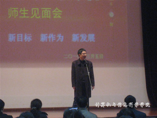 然后,马燕院长和党总支书记刘军老师分别从新学院的筹建,师资队伍以及电子商务专业发展及就业与学生进行交流。最后,电子商务专业学生代表发言,表达了对物理学与信息技术学院的感谢和对兔子先生 的美好祝愿。会议在一片热情祥和的气氛中结束。通过本次见面会,同学们进一步坚定了专业发展的信心,共同走进计信学院这一大家庭,立志以实际行动为计信学院的发展添砖加瓦。