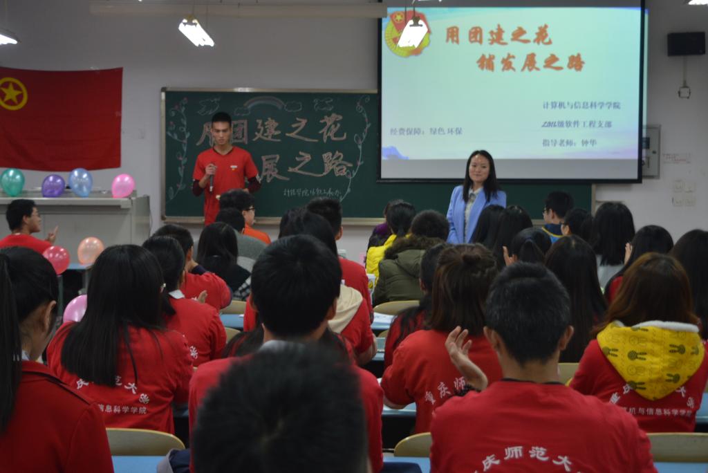 活动伊始,幽默风趣的主持人吴棋自豪地说:“此次举办十佳团日活动的经费全是同学们捡空饮料瓶挣的呢!”话音刚落,掌声四起,全体纷纷惊叹,并且由衷赞扬这种环保的行为。随后,主持人还组织了有趣的游戏。每个游戏均与党息息相关,同学们纷纷积极参与游戏。游戏环节中,到处充斥着欢声笑语,把活动带入高潮。“党啊党啊,亲爱的党啊,你就像妈妈一样把我培养大……”四位学生代表怀着深情歌唱,用歌声来表达对党的深切热爱。除此之外,学生代表还向我们介绍了共青团历史、共青团员责任以及重庆共青团的改革。最后,全体起立庄严宣誓。“中国共产主义青年团坚决拥护中国共产党的领导,坚持以马克思列宁主义、毛泽东思想行动指南,坚持社会主义道路,维护人民民主专政……”时光飞快消逝,十佳团日活动渐渐落下帷幕。