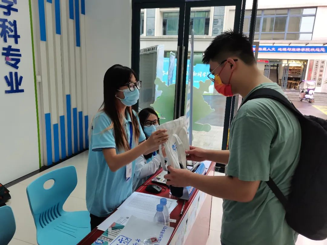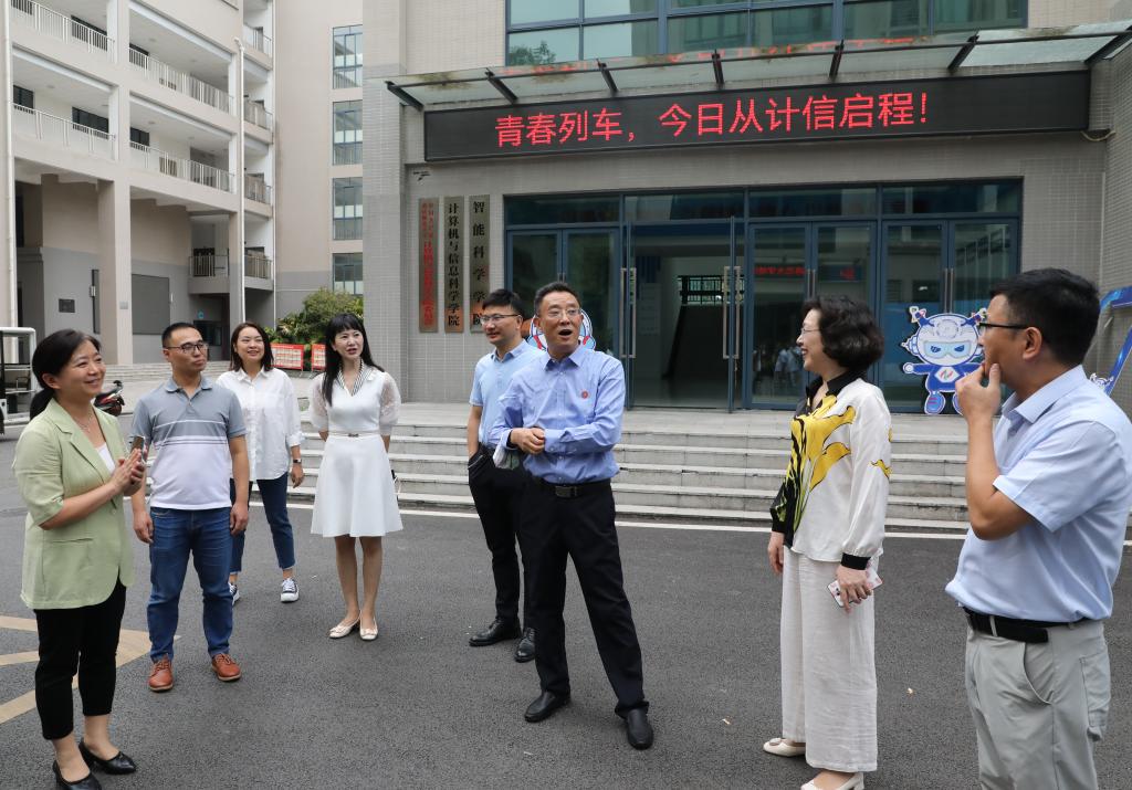 迎新工作,了解新生报到情况,体验特色活动,观览文创展示,指导迎新工作,对2022级新生表示热烈欢迎,对参与迎新工作的老师和志愿者们表示亲切慰问,也充分肯定了计信学院的迎新工作有特色,有温暖。