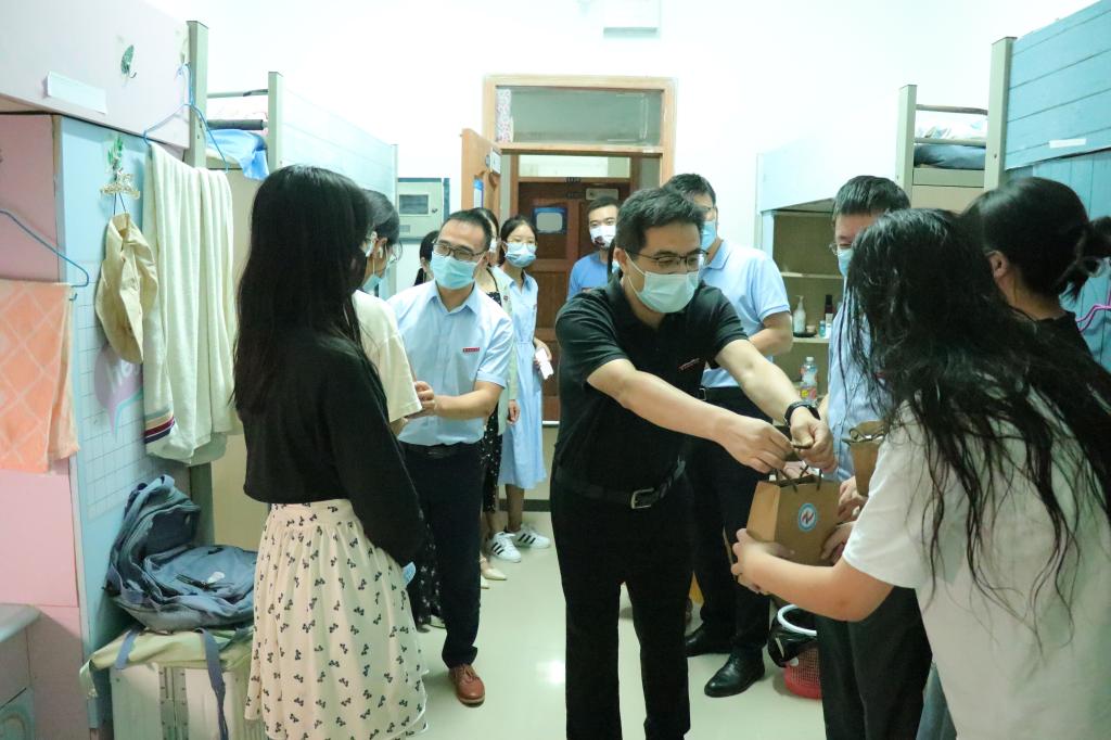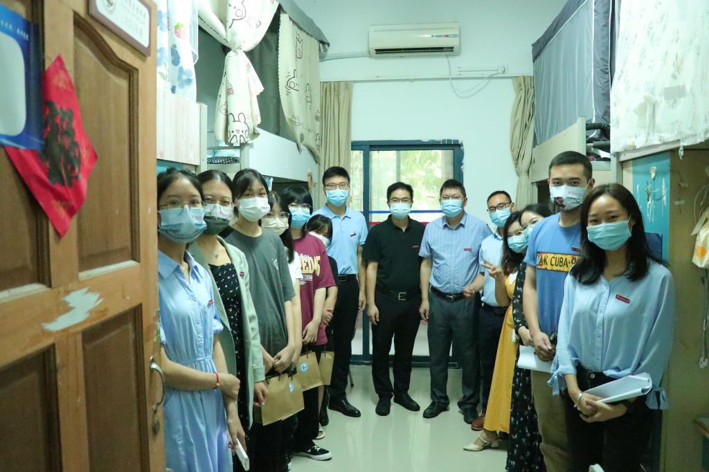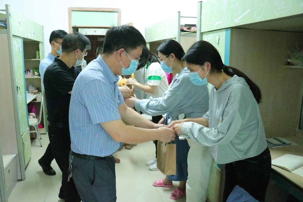 院长魏延,副院长冉瑞生、崔少国,党委副书记李若岩,学工办主任钟华,以及全体辅导员,一同走进2022级新生寝室。