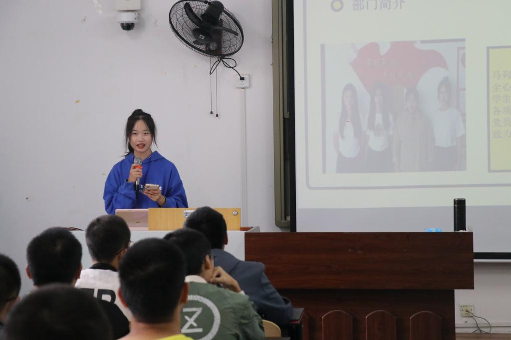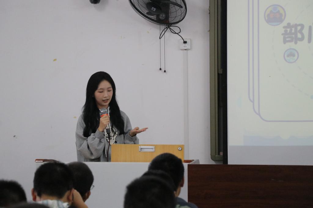 活动伊始,马列部、组织部、宣传部……等十四个团学部门依次进行宣讲。各部门宣讲人对各部门的部门职能、工作内容、团队建设、招新期待等方面进行讲解,不少部门也通过剪辑的视频来引起新生的兴趣,展示部门独特的魅力。激情洋溢的宣讲、精彩纷呈的部门、引人入胜的视频、逸趣横生的互动,宣讲人们用各自的方式让新生们体会到了团学会的活力与加入团学会后可以获得的成长与收获。兔子先生