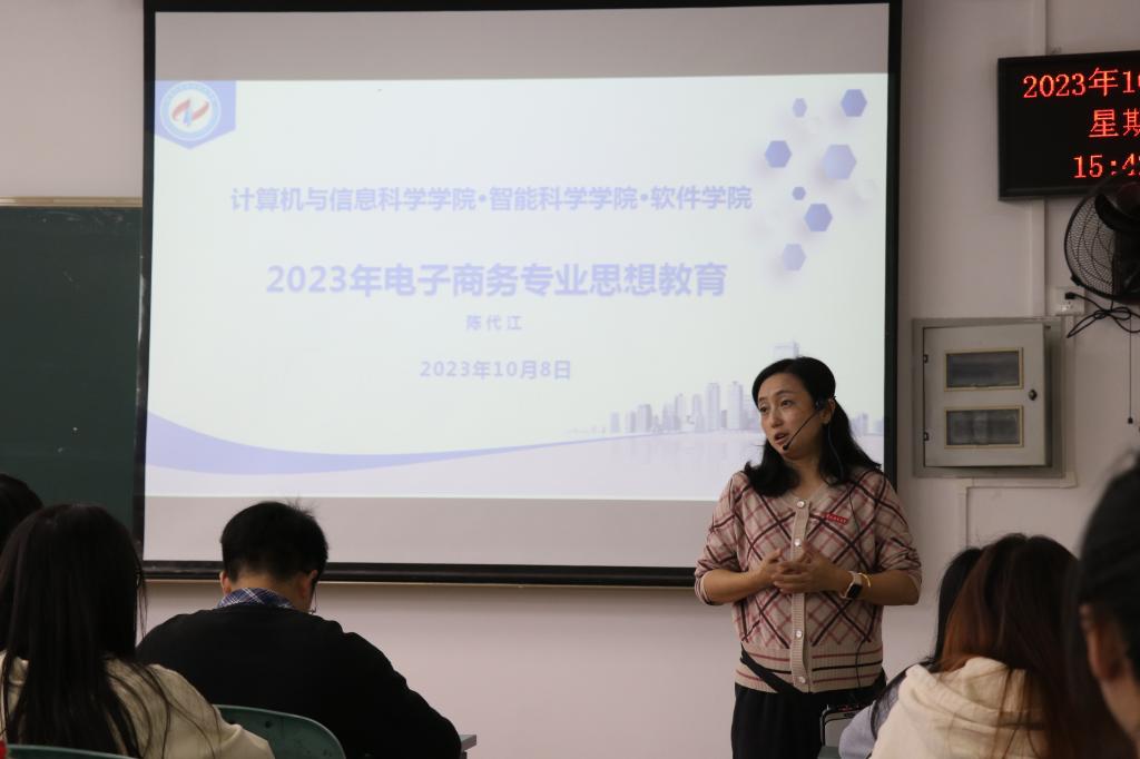 为帮助2023级新生更好地了解专业发展前景,明确未来发展方向,激发学习创新热情。10月8日,计算机与信息科学学院先后在弘德楼举办了针对软件工程、电子商务、计算机科学与技术、智能科学与技术专业四个专业新生的专业思想教育和成长成才辅导讲座。讲座分别由各专业系主任冯骥、陈代江、牛彦敏和朱德利主讲,各系优秀教师代表出席,2023级全体学生参加。