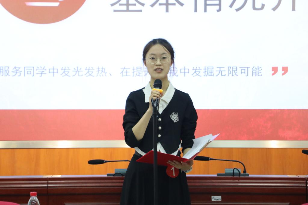 会议伊始,第十五届团委学生会主席团成员蓝小云宣读了关于开展这次学生代表大会的批复,学生书记郑琦进行第十五届团委学生会工作汇报,团委书记钟华对本次大会提出了要求与期望。随后,12位主席团候选人依次上台进行个人展示和竞选陈述,通过展示学习和工作中的成果、阐述未来工作的规划与展望。在答辩环节,老师与学生代表围绕思想信念、学生工作等方面提问,候选人们以清晰的思路和自信的表述充分表达观点,获得师生们阵阵掌声。