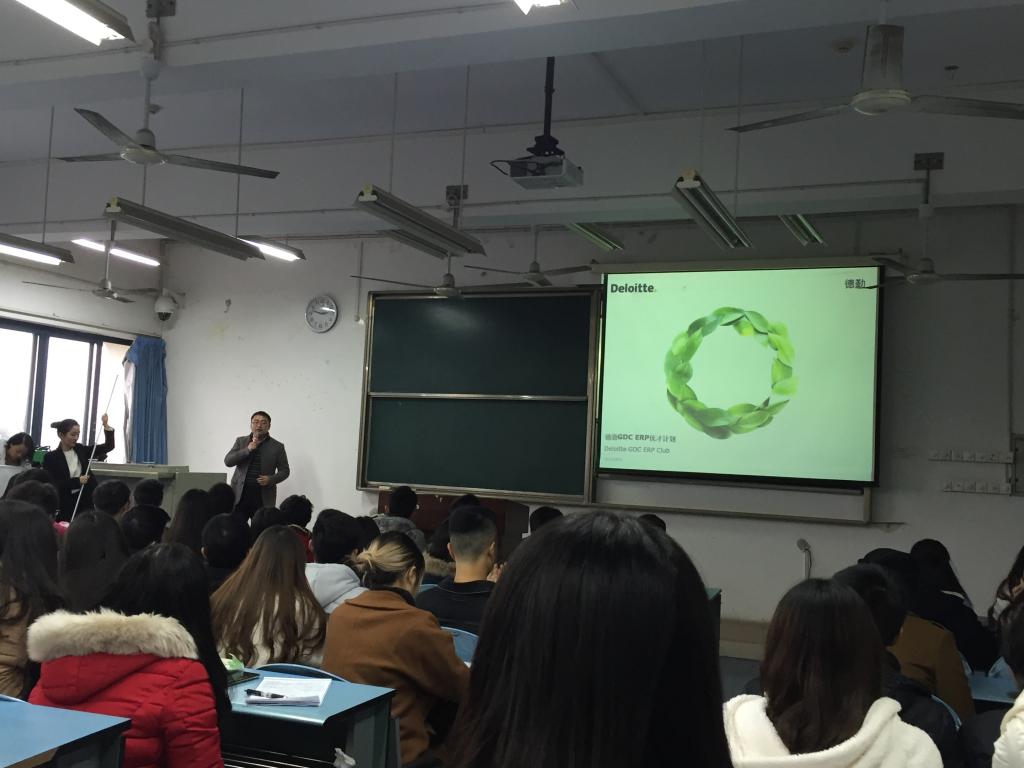 宣讲会伊始,项目组经理对德勤公司做了一个简短的介绍。据悉,德勤公司的企业咨询部门的“一站式”服务模式,是其他同类公司所不及的。“一站式”服务不仅提供产品的销售,还提供相关的技术服务、维修保养服务、使用培训服务、金融保险服务等系列服务,不仅扩大了销售,而且使购买、售后服务等流程更加便捷,促使吸引更广的客户流量。随后,项目组内成员结合应用案例生动形象地介绍了晦涩难懂的SAP系统和ORACLE数据库,使同学们对德勤企业咨询部的运作模式有了初步了解。最后,项目负责人对项目做了简述,不仅让同学们了解到该项目对人员选择方面的要求,而且双方若是互相达成了合作意向,该公司会对学生进行定向培养,使学生能掌握ERP等基本技能,并且在经过培养后,面试通过的学生能够从大三暑假开始在德勤进行实习,最终成为德勤的中流砥柱。面对如此优越的并且有很好面试机会的公司,同学们纷纷摩拳擦掌,想要通过自己的努力进入德勤公司。